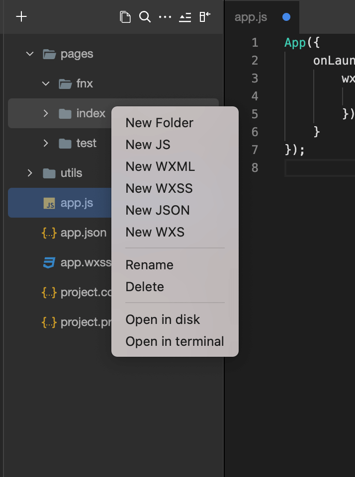 Users can quickly create new folders and files by right-clicking on the file tree.