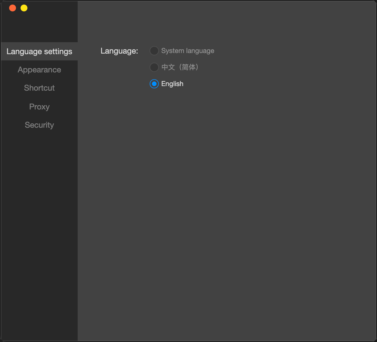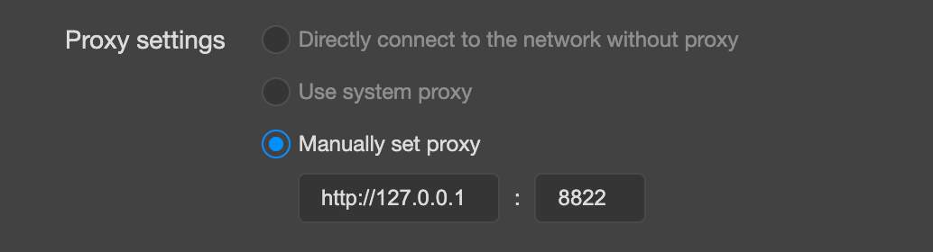 Users can choose to use the system proxy, or not use any proxy (direct connection), or manually set the proxy.