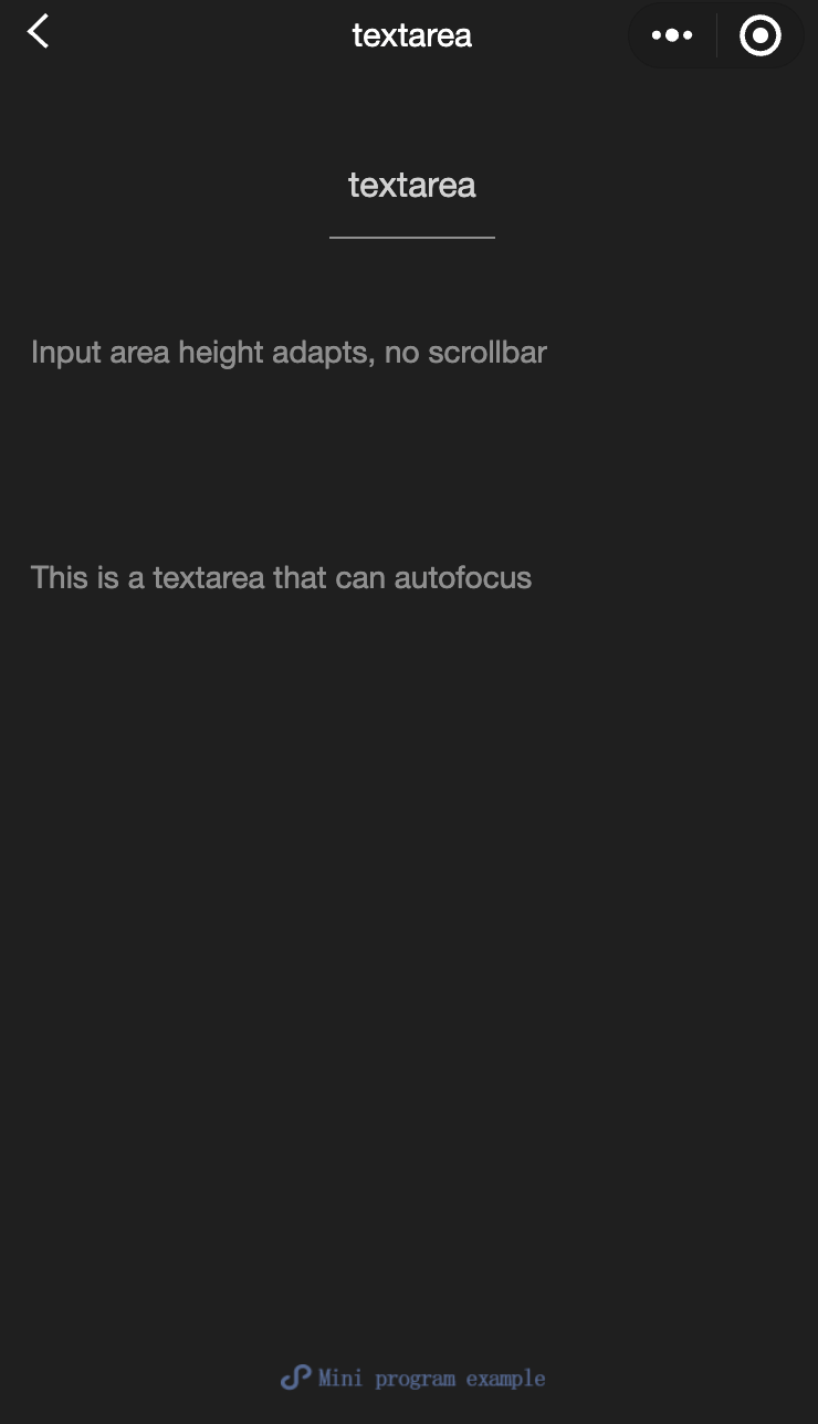 <textarea bindblur="bindTextAreaBlur" auto-height placeholder="Automatic height adjustment" />