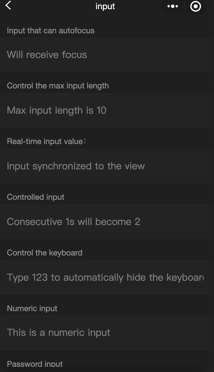 Function Description: Input box, this component is Native Component , please pay attention to the relevant restrictions when using it.