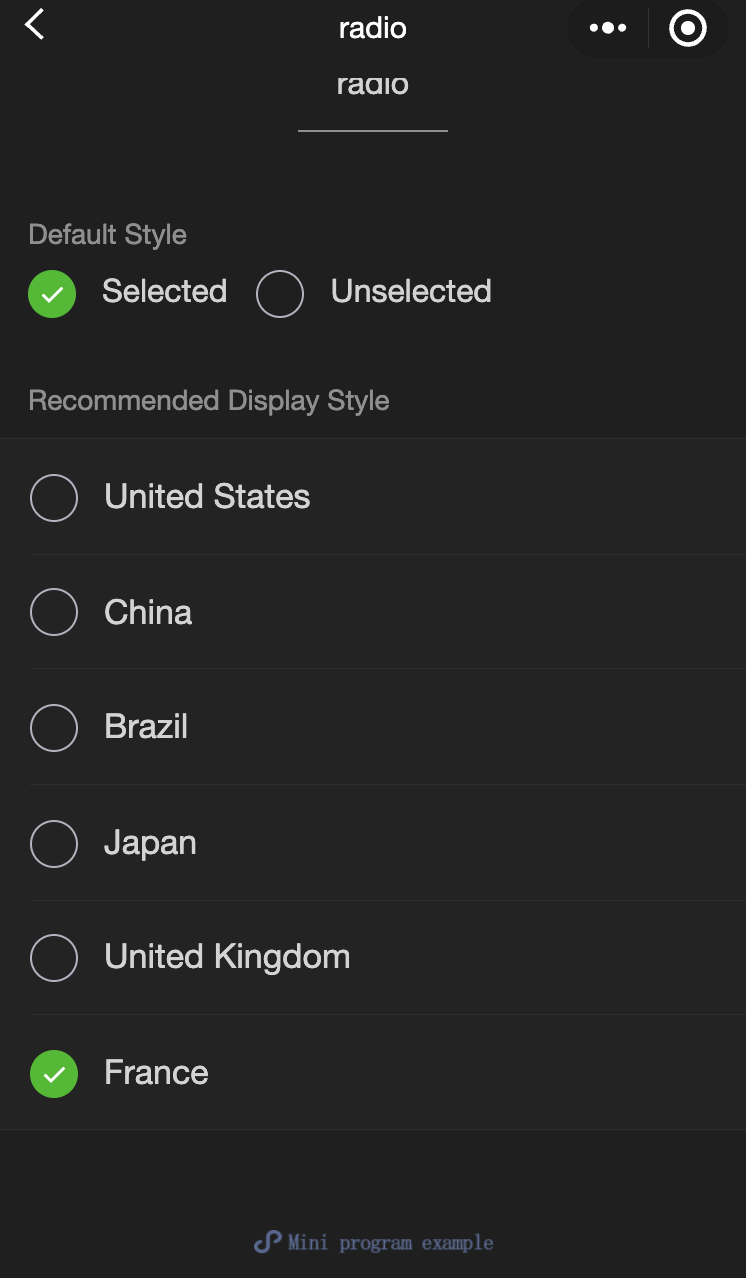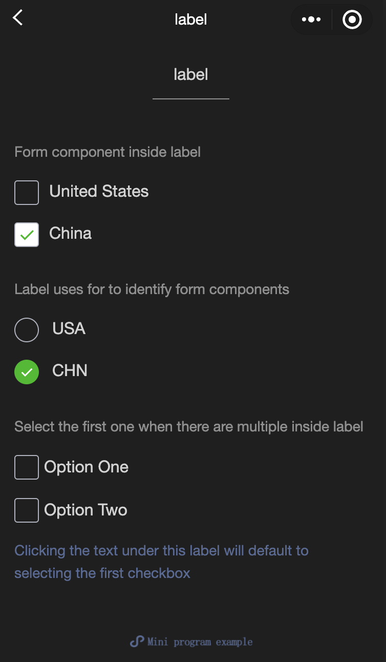 | bindchange | eventhandle | - | No | When the checked value changes due to a click, a change event is triggered, event.detail={ value} |