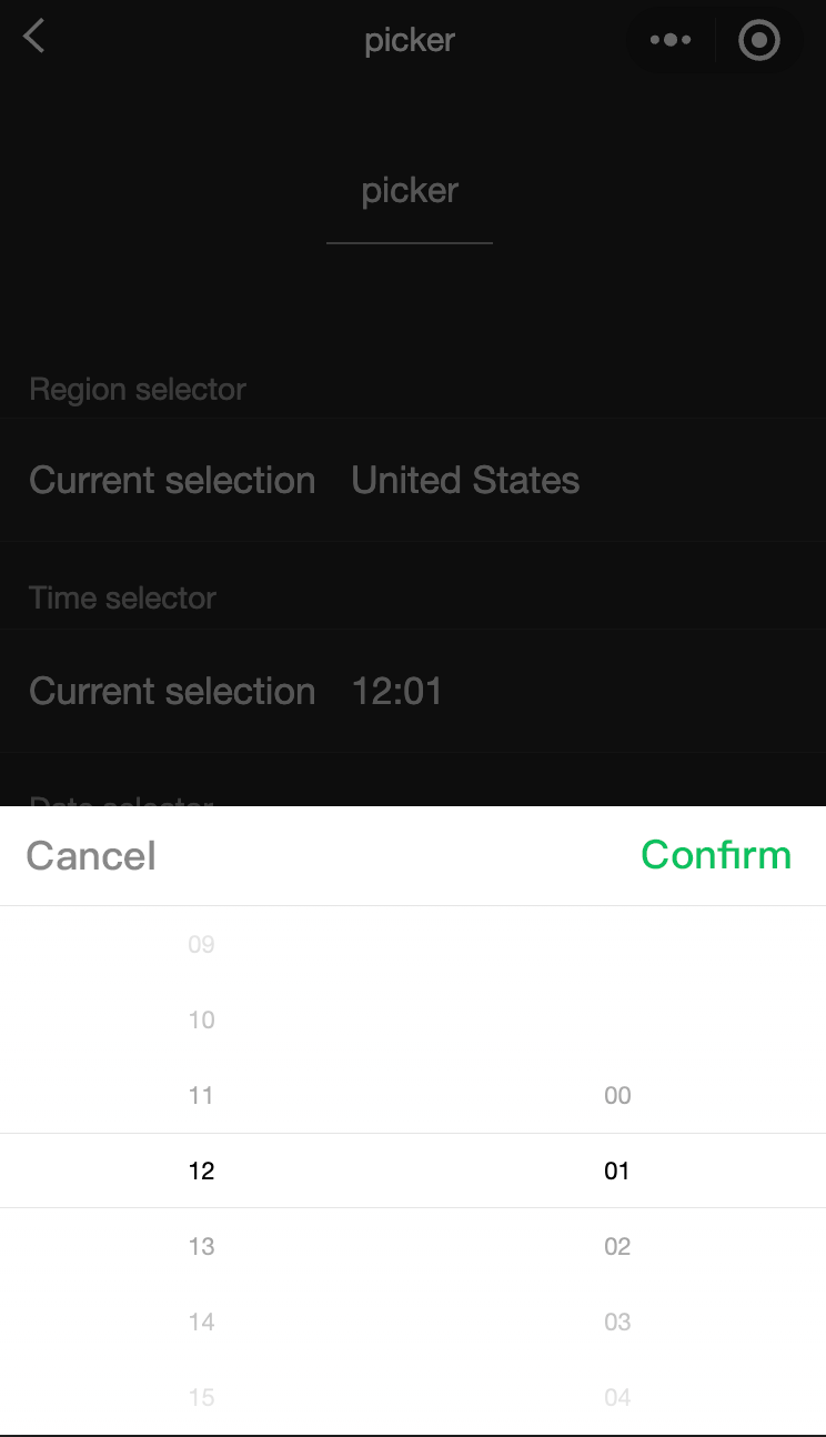 | bindconfirm | eventhandle | - | false | No | When clicking Finish, the confirm event is triggered, event.detail = {value: value} |
