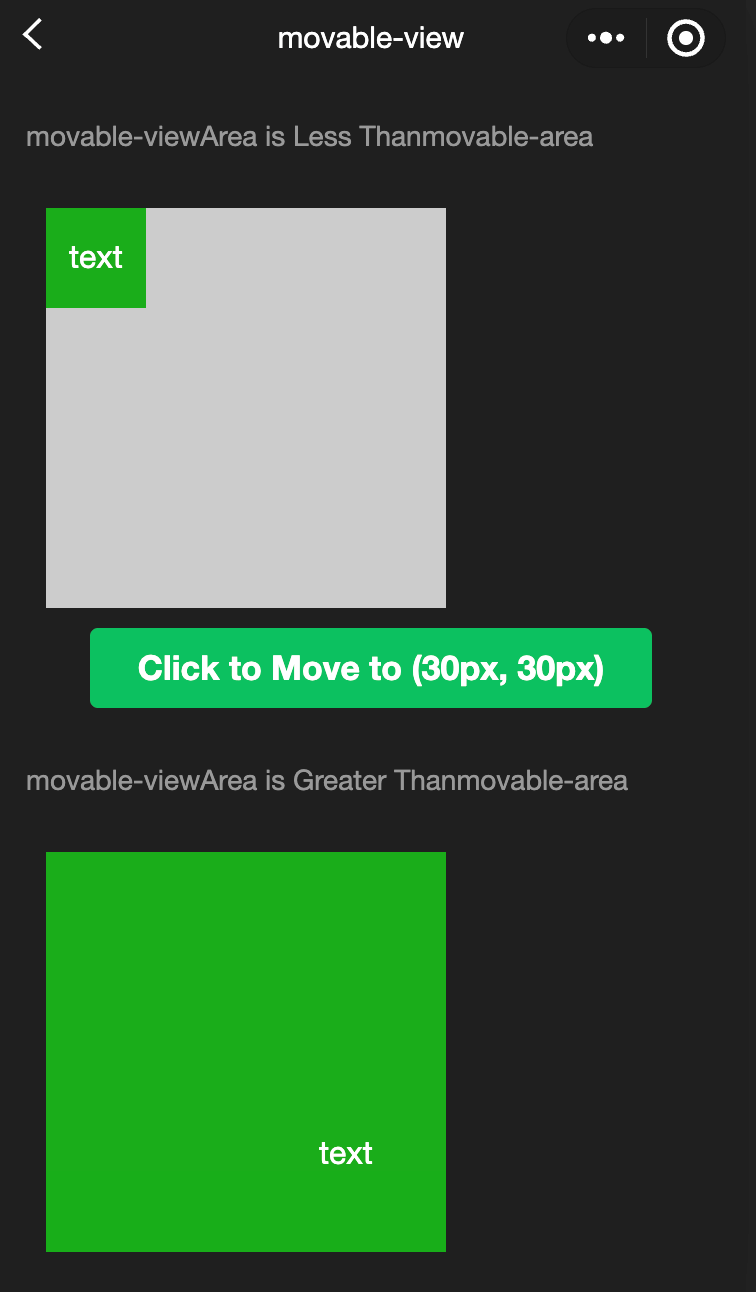 - The default position of movable-view is absolute, and the top and left attributes are 0px.