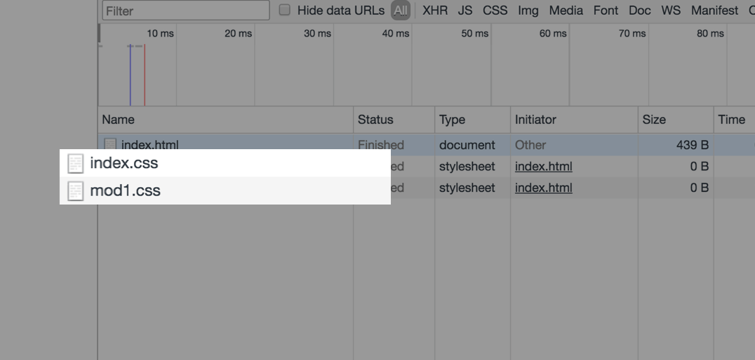 This method will not merge test_0.css into index.css in the request, that is, when requesting index.css, there will be an additional request for test_0.css.