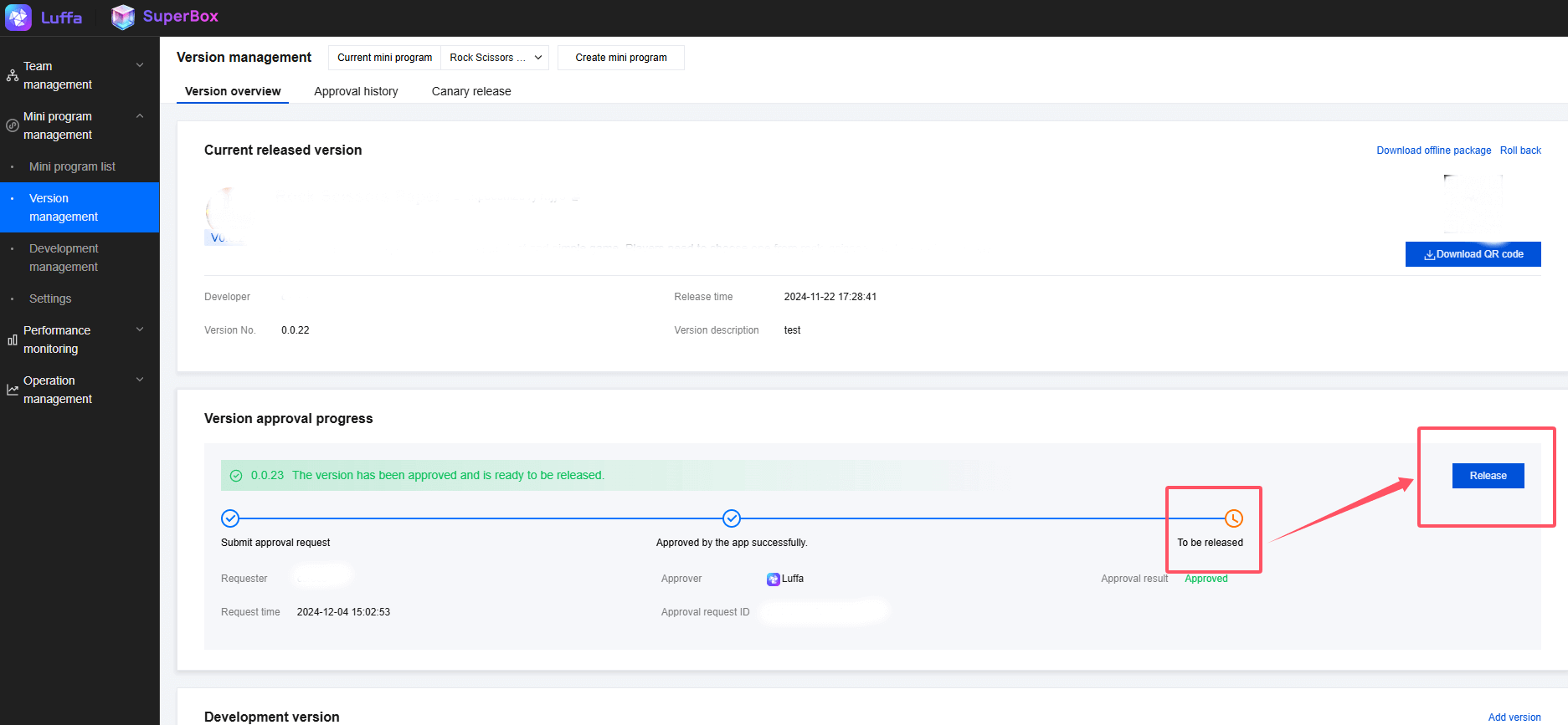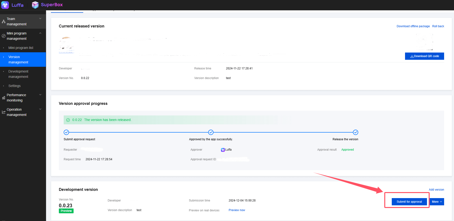 1.After uploading, developers can submit version audits in version management.